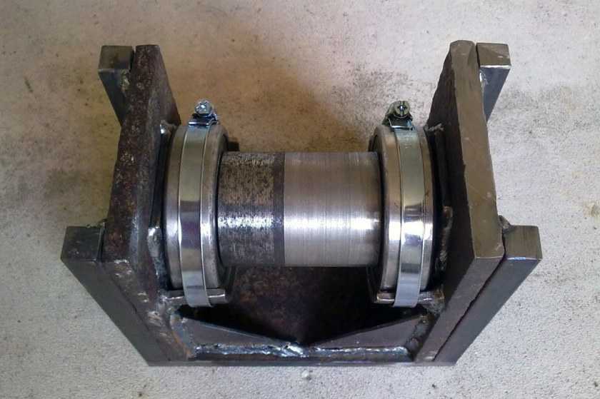К основанию (швеллеру) привариваются подшипники, которые соединяются между собой валом в виде стальной трубы соответствующего диаметра.
