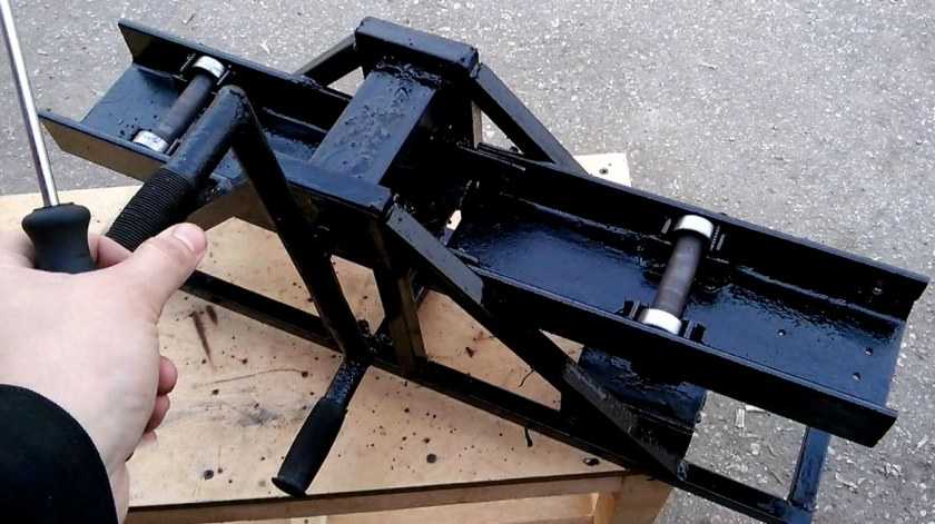 - использование звездочек не является обязательным, поскольку конструкцию можно выполнить на основе только одного ролика, а в качестве прижимного механизма использовать домкрат;