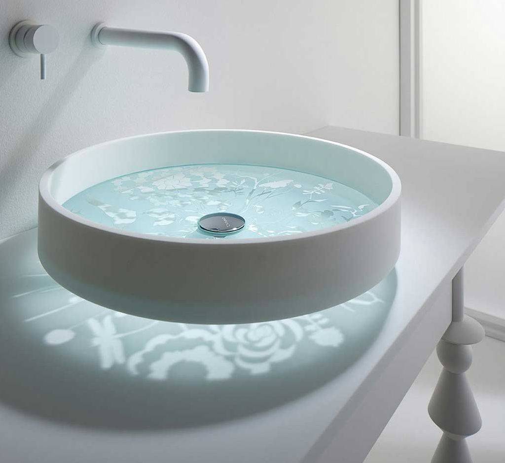 Огромный плюс дизайнерских раковин заключается в том, что вы можете применить их к любому стилю. А разнообразие идей просто зашкаливает. Причем не только в плане формы, но также и расцветки. Подробнее хотелось бы остановиться на нескольких вариантах накладных конструкций.