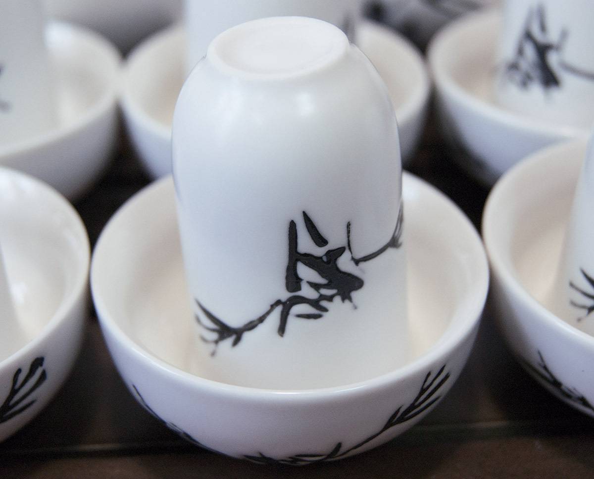 Несмотря на то, что ручек чашечки не имеют, держать их очень удобно, они не выскальзывают из рук. Стекло используется жаропрочное с двойным дном, которое не позволяет напитку быстро остывать. В наборы для чаепития входят чайные пары, поднос, заварочные чайники.