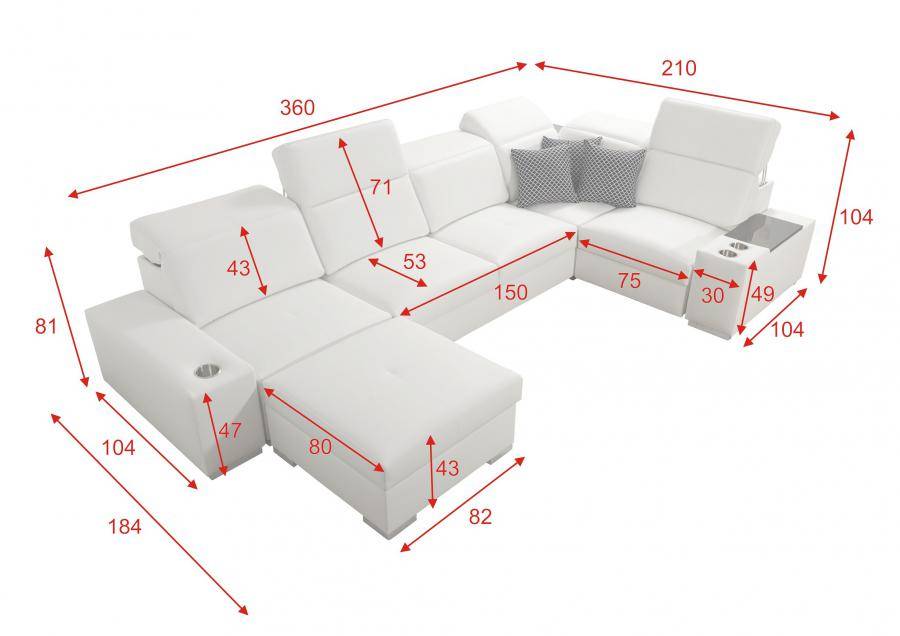 При этом обязательно берется во внимание и угловой участок. Чтобы правильно измерить ширину, нужно учесть не только угловую секцию дивана, но и его основание