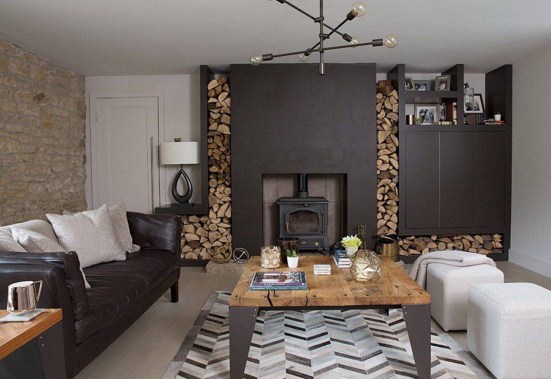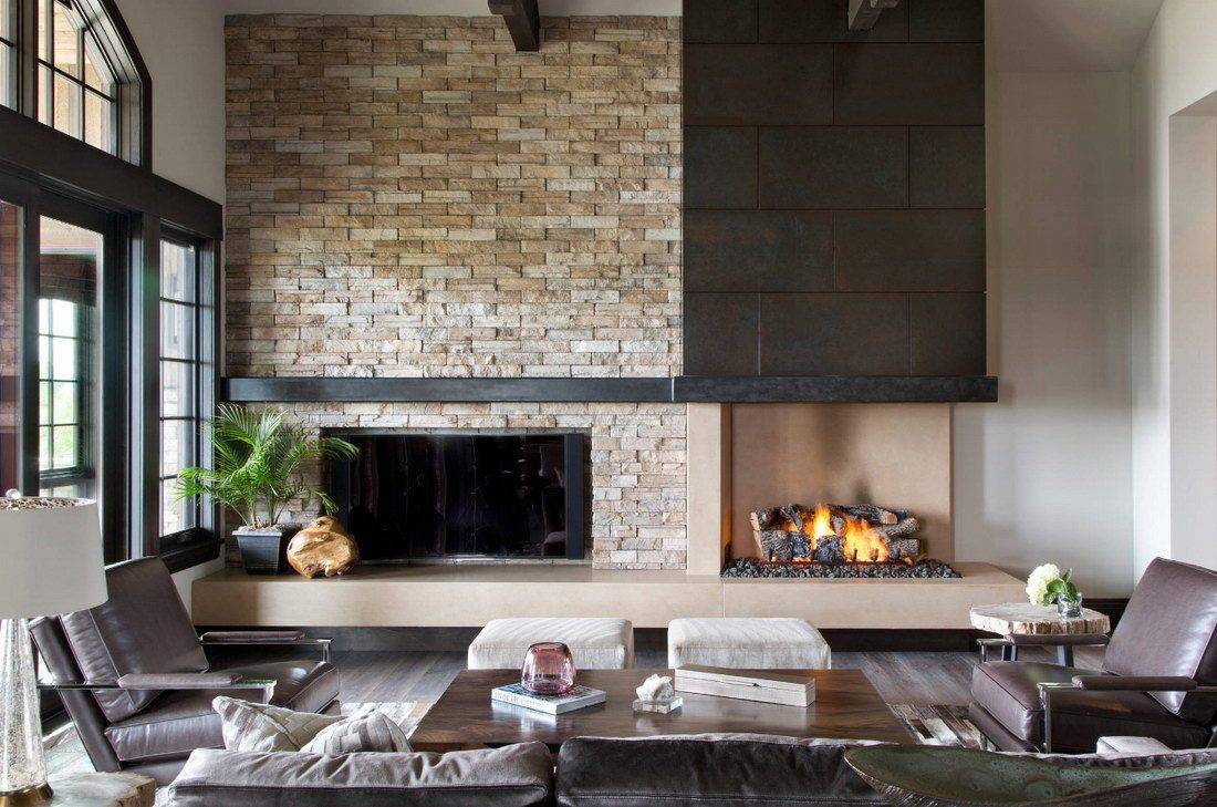 Очень привлекательно выглядит он и в загородных домах, ведь там получается объединить главные природные материалы и стихии: дерево, камень, огонь.