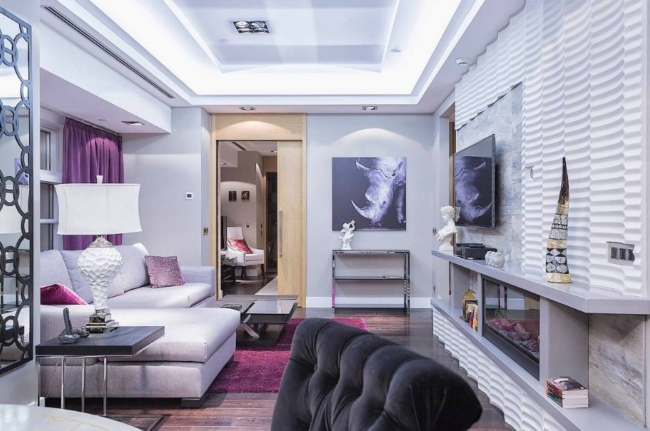 По мнению дизайнеров, в интерьере гостиной простой квартиры будет уместным и электрический камин. Лучше отдавать предпочтение самым компактным и встроенным моделям. Они идеально дополнят дизайн и в целом не займут много места. Кроме того, надо позаботиться и о правильной расстановке мебели. Ведь для камина надо освободить максимум свободного пространства.
