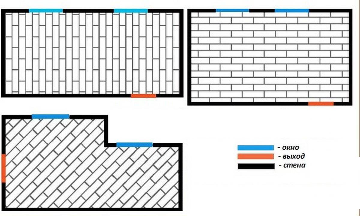 - По направлению движения в помещении – оптимальный способ увеличить срок эксплуатации готового покрытия, так как в этом случае истираемость материала на стыках минимальна.