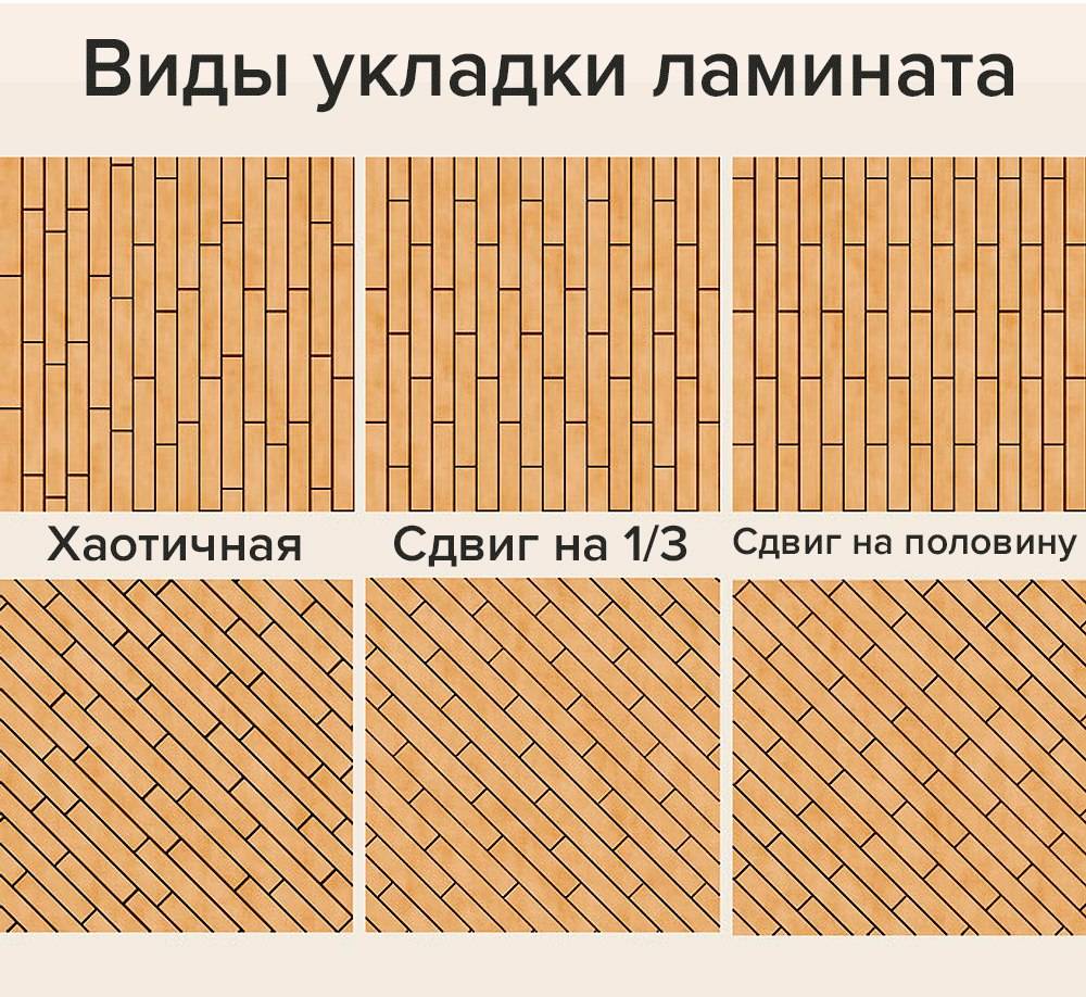 - Хаотичная – с разнообразным смещением планок из серии «как получилось». По мнению технологов известных заводов (Egger, Pergo и др.) этот способ нельзя назвать удачным, так как взаимная обвязка швов некоторых планок получается недостаточно прочной и надежной. Да и визуальной красотой такая сборка не отличается.
