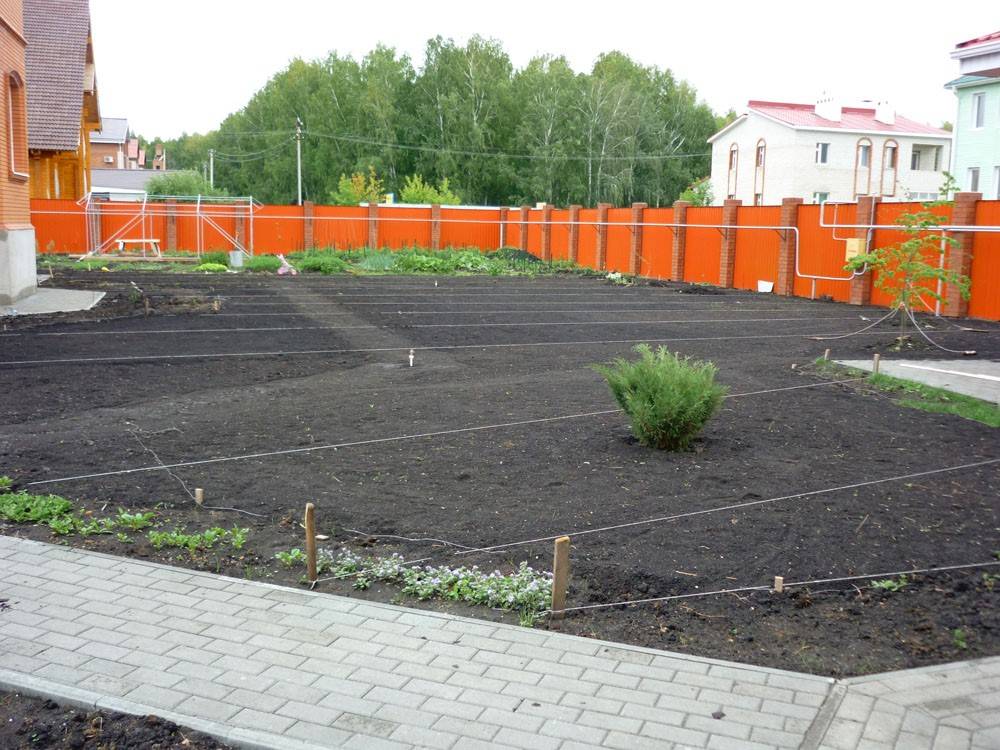 Далее идет этап подготовки земли под покрытие. Необходима ликвидация старого мусора и сорной растительности, рыхление грунта. Если ваша почва обладает низкой плодородностью, верхний слой ее нужно убрать и положить сверху вместо старого плодородный слой толщиной порядка 15 см.