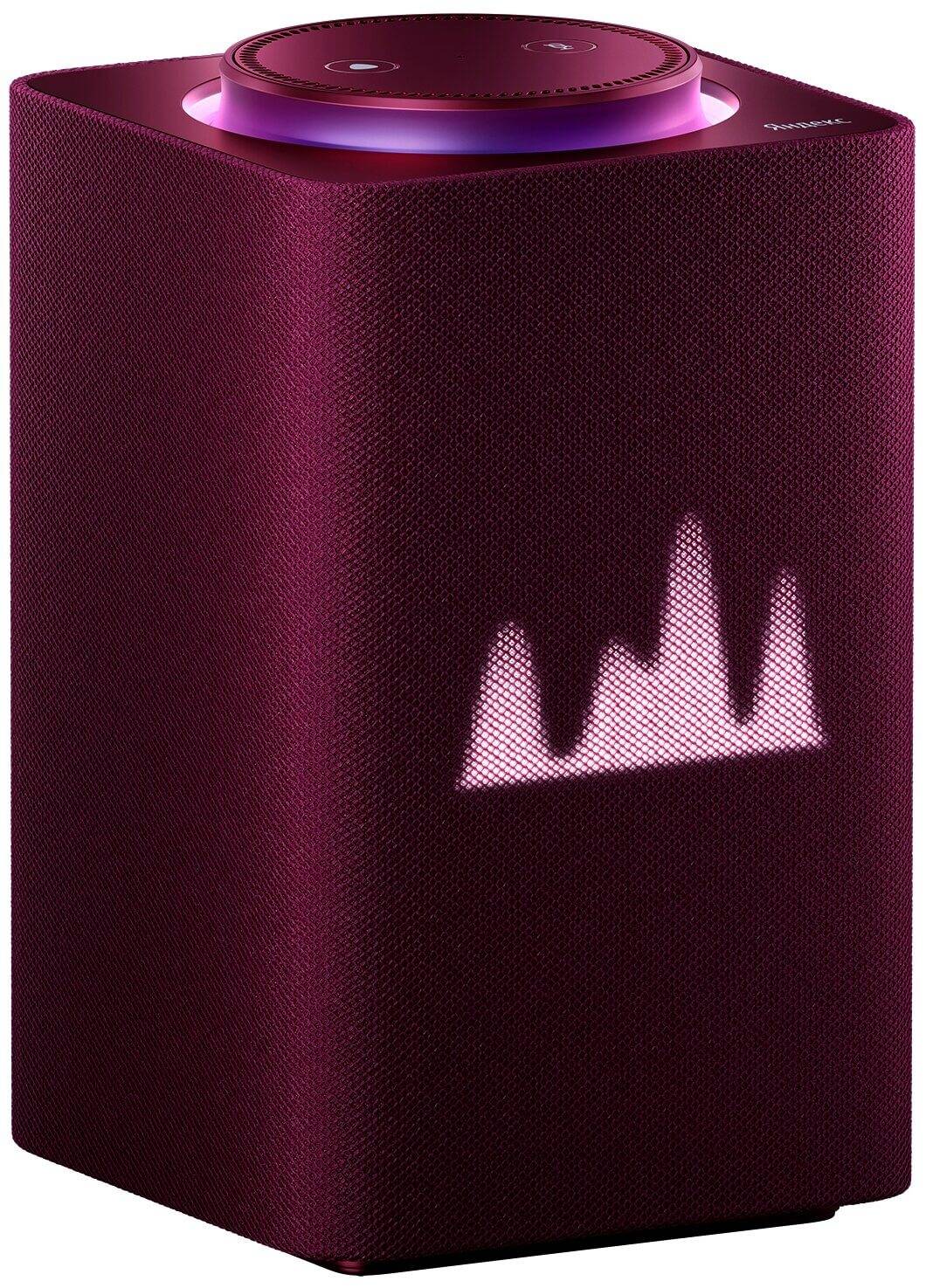 Компактная и легкая (чуть больше 170 грамм) умная колонка с голосовым помощником Марусей. Принимает команды голосом, 4 микрофона быстро улавливают голос владельца. Также имеется пульт управления на верхней крышке.