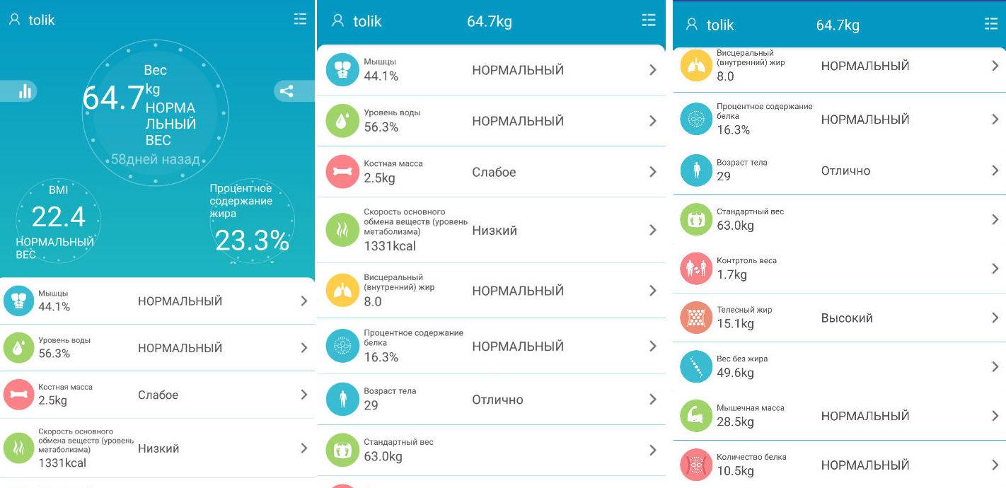 Сами весы также предоставляют информацию об уровне мышечной массы, проценте жира в организме и даже уровне гидратации. Кроме того, алгоритмы рассчитывают ИМТ (индекс массы тела), благодаря чему можно оценить общее состояние своего тела.