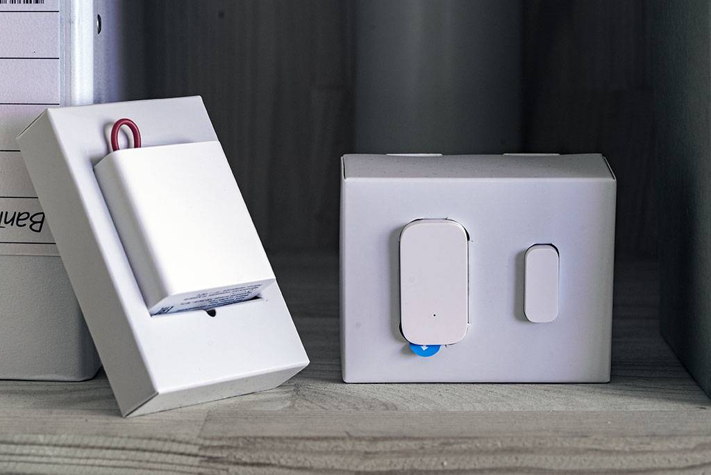 - Датчик открытия. Зачастую используется для работы в паре с освещением или как охранный датчик. Но самое интересное – его можно разобрать, подпаять к геркону два проводка и получать уведомления при их замыкании. Так можно снимать показания со счетчика, контролировать уровень жидкости, проверять закрыт ли замок и многое другое.