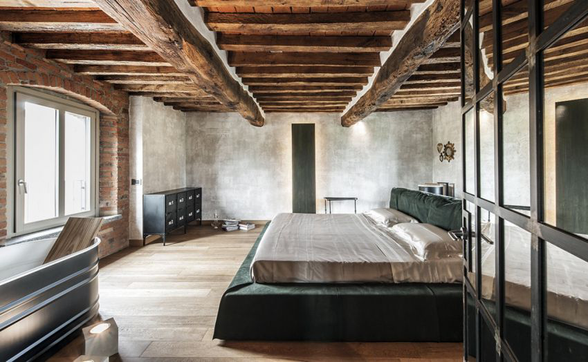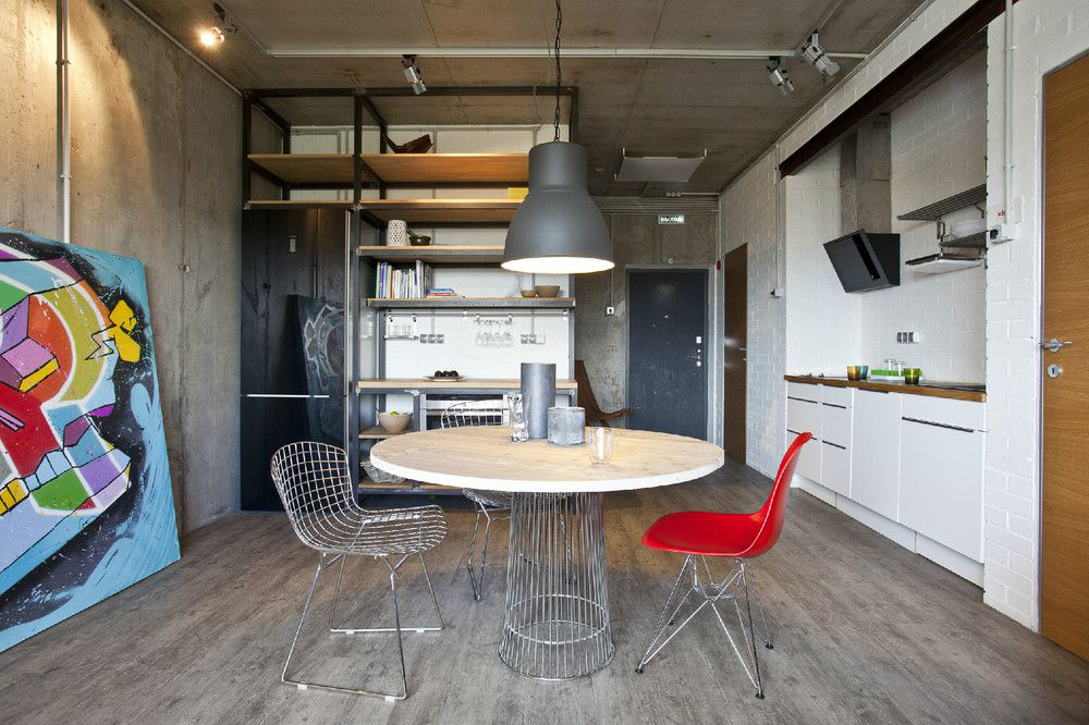 Важной чертой индустриальной стилистики является высокий потолок. Ведь и на настоящих заводах и фабриках именно так обстоят дела, потому возникает эффект максимальной аутентичности