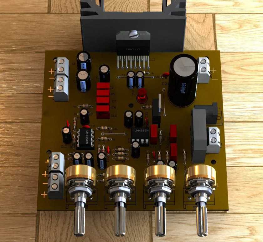 Набор деталей подготавливается по списку, в соответствии с выбранной схемой. Как правило, в него входят: микросхемы TDA, резисторы, конденсаторы, тестовый динамик и алюминиевый радиатор.