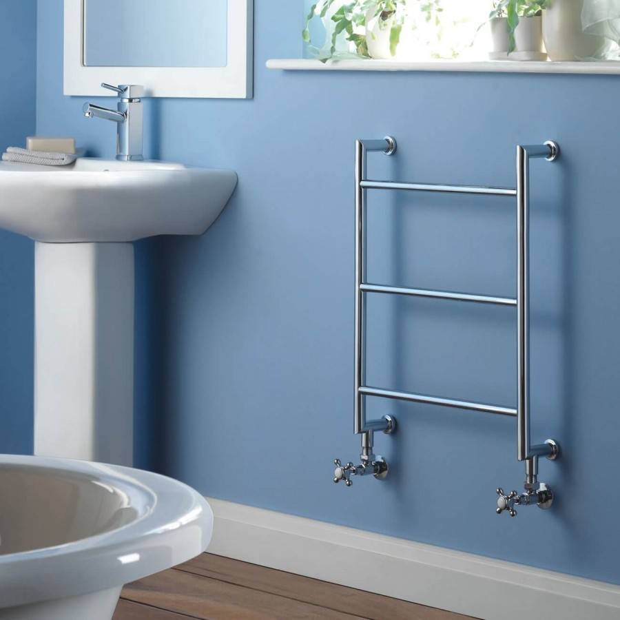 - От поверхности стены к полотенцесушителю необходимо соблюдать дистанцию в 4 сантиметра. Если диаметр труб устройства превышает 25 миллиметров, то следует увеличить до 7 сантиметров.