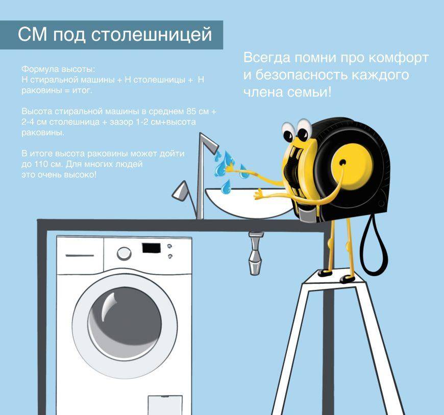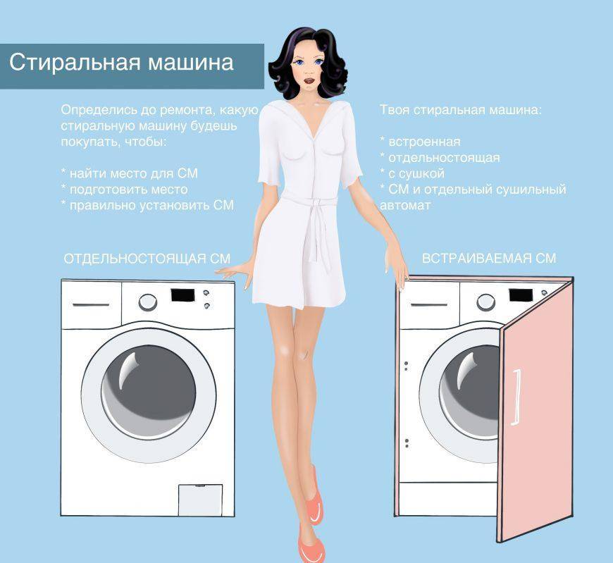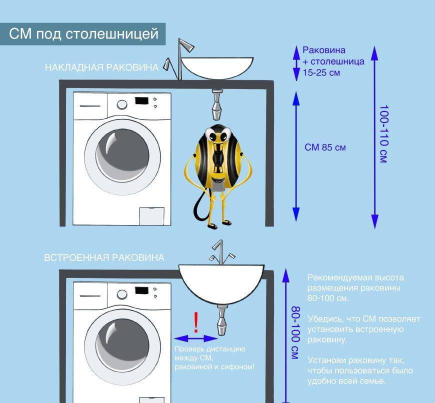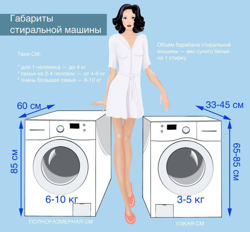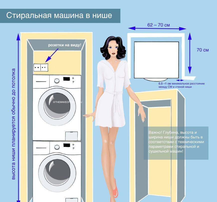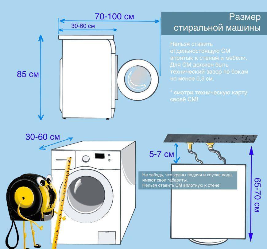 - пространство для установки машинки должно быть хотя бы на 1 см больше ее номинальных размеров.