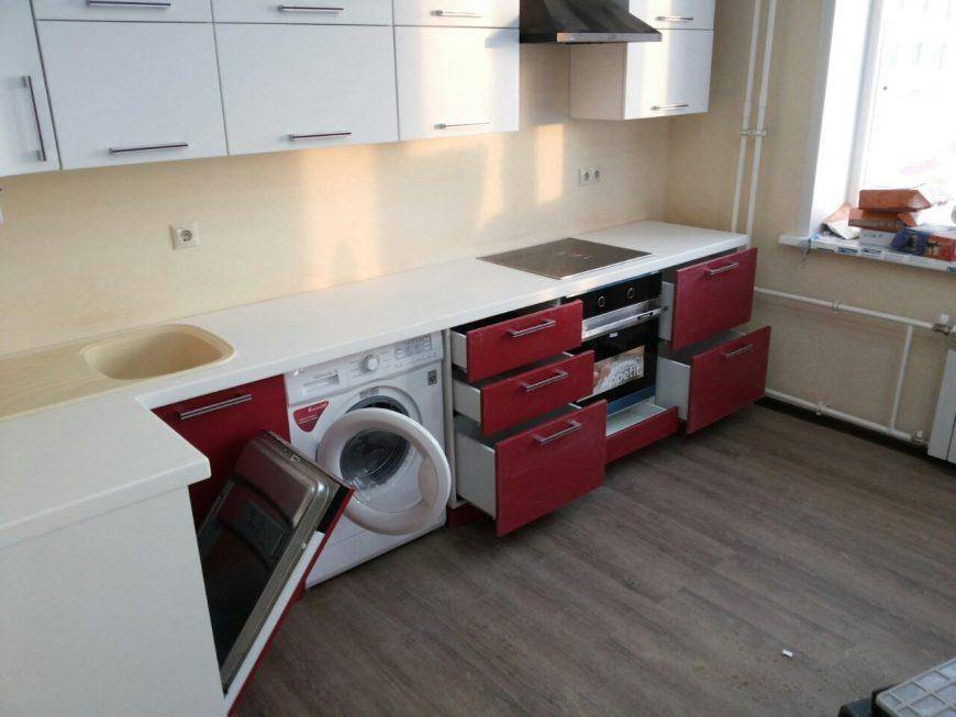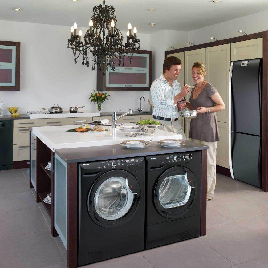 Если не хватает места в самых распространённых местах, то технику можно установить на кухне или в коридоре. Но вряд ли у кого-то в коридоре найдутся требуемые коммуникации. Придется подводить всё к месту установки, а это уже значительно усложнит и удорожит процесс. А вот на кухне она впишется вполне комфортно. Чаще всего ее монтируют рядом с раковиной или во встраиваемый кухонный гарнитур. Стоит учесть, что температура и влажность кухни не всегда будет соответствовать правилам эксплуатации устройства.