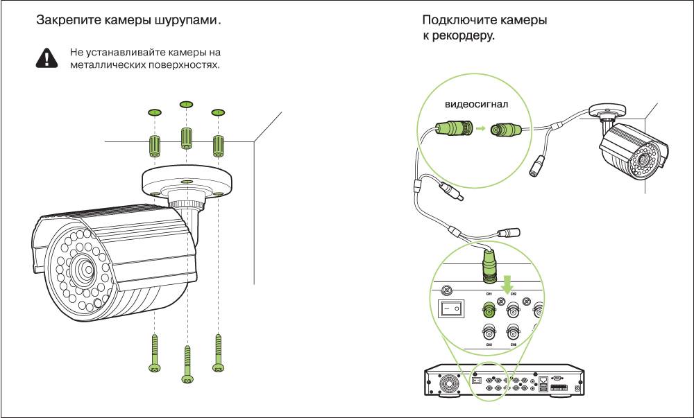 Для крепления камер используются специальные кронштейны, которые обычно находятся в комплекте