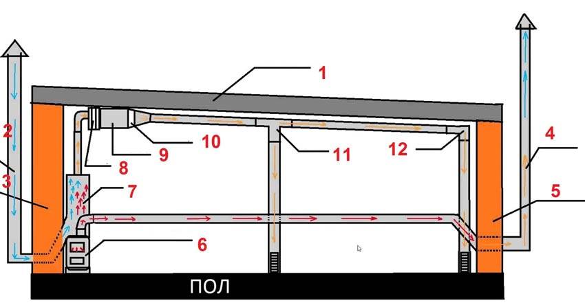 Система вентиляции в подвале гаража. Схема воздухообмена погреба