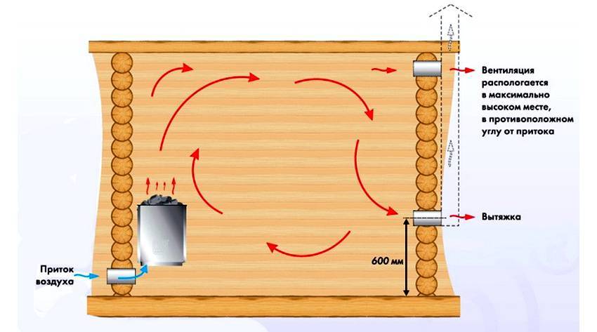 | Сохранение температуры в помещении | Воздухообмен не должен нарушать процесса парения, то есть воздушные потоки не должны охлаждать парилку. |