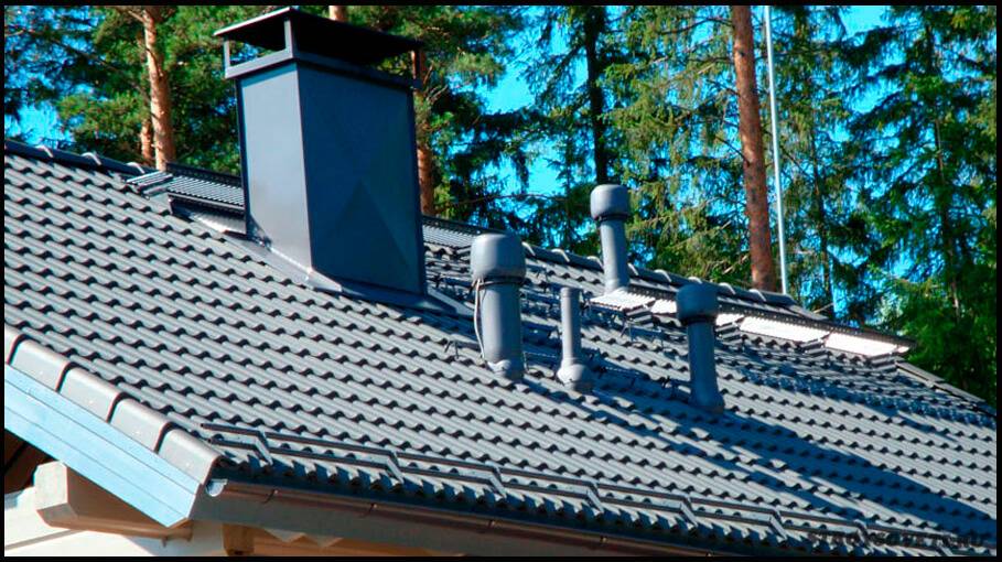 Вентиляцию над крышей следует довести до высоты, равной высоте дымоходов. Так что необходимо обеспечить стабильную тягу. Это значение зависит от расстояния дымохода от ребра конька.