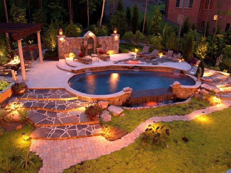 Правильно спланированный световой поток позволит подчеркнуть те элементы, которые вы посчитаете нужными. Нежелательные места бытового назначения легко скрыть мраком ночи.