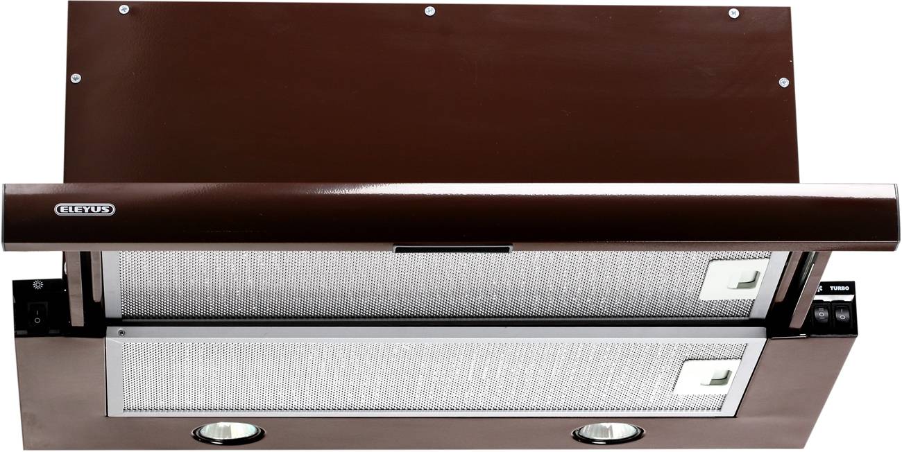 Телескопические вытяжки (выдвижные или убирающиеся) имеют уменьшенные размеры в нерабочем положении. Когда прибор включен, его рабочая поверхность увеличивается вдвое благодаря выдвижной панели.