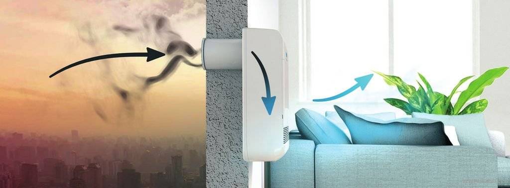 Клапан имеет конструкцию, не допускающую попадания в квартиру загрязненного пылью воздуха. Подаются уже очищенные воздушные массы.