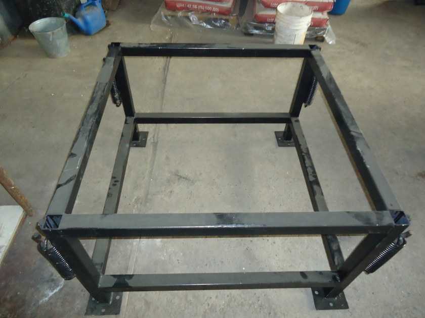 Сверху рамы данного устройства следует подготовить место для закрепления пружинок, которые будут компенсировать излишнюю вибрацию.