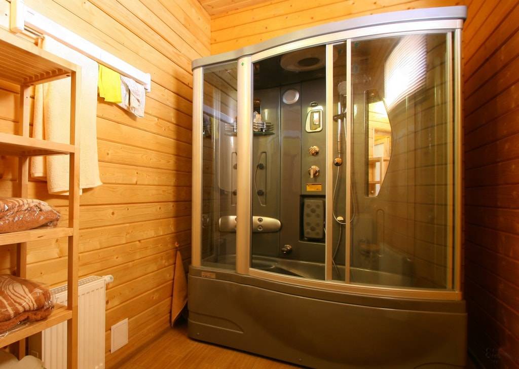 Включил производитель и ряд дополнительных опций. В потолке установлена светодиодная подсветка, которая освещает внутреннее пространство синим цветом. Наличие радио позволяет послушать музыку или последние новости. Своевременно удалять влагу помогает вентиляция. Настроить работу кабинки легко с помощью электронного управления.