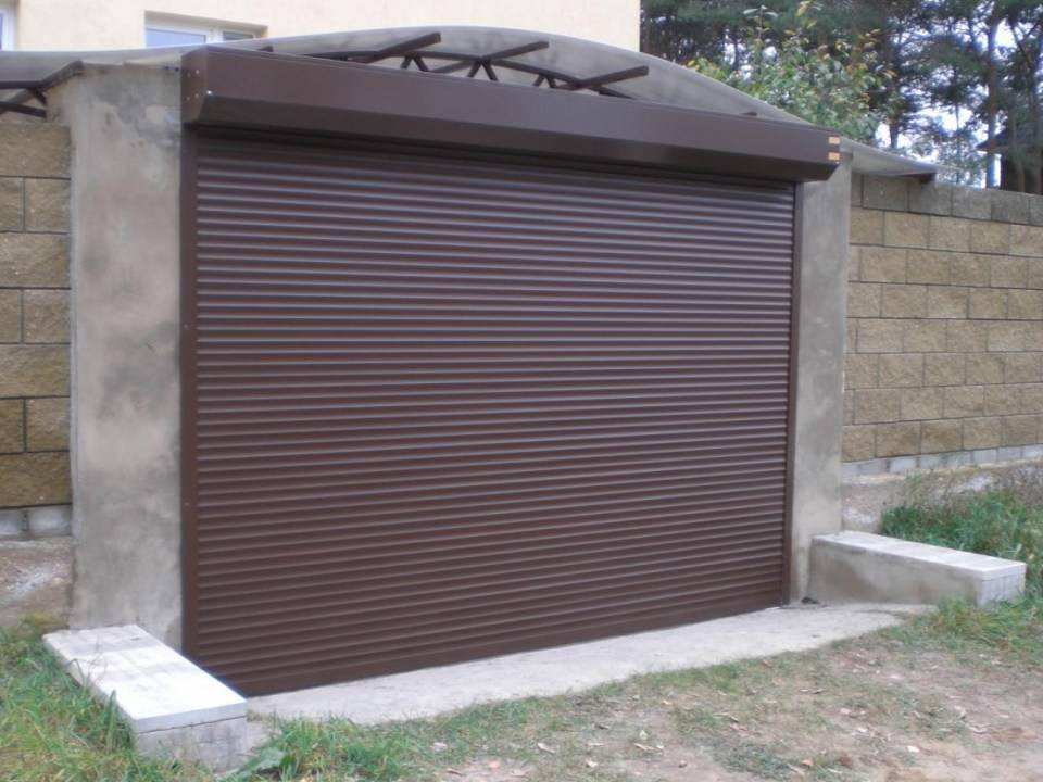 Этот вид ворот для гаража, по сути, металлические утепленные жалюзи, которые сматываются в рулон. Полотно состоит из вертикальных или горизонтальных ламелей, которые наматываются на вал и убираются под потолок или сдвигаются в сторону.