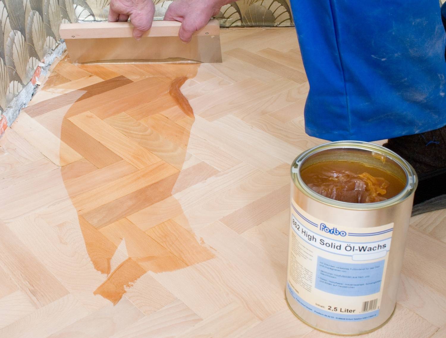 На заметку: масло на базе твердого воска повышает эластичность древесины, предотвращает ее пересыхание, обладает грязеотталкивающим свойством и усиливает прочность пола. В числе лучших производителей средства выделяются бренды «Osmo», «Bona», «Lobasol» и «Saicos