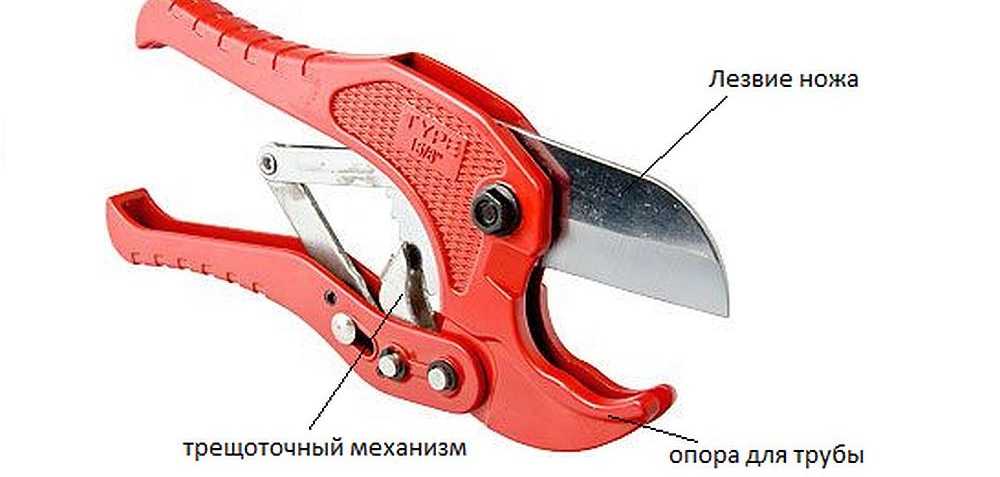Ножницы — главный режущий инструмент при монтаже полипропиленовых труб небольшого диаметра, с помощью которых подводят холодную и горячую воду из системы водоснабжения к сантехническим приборам. Во всех модификациях для обеспечения прямого угла среза снизу имеется полукруглая площадка небольшой ширины с прорезью, на которую удобно ложится труба и входит прорезающее оболочку лезвие, опускающееся сверху.