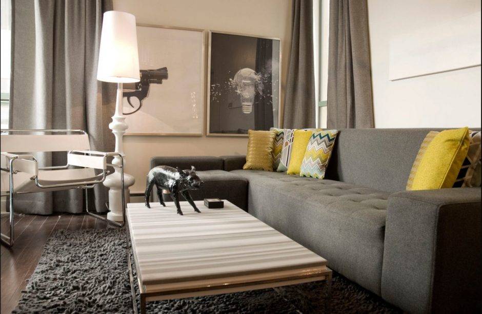 Желтые. Солнечный оттенок способен сделать живым самый мрачный интерьер. Не бойтесь переборщить с ним. В сочетании с серым он никогда не будет выглядеть пресыщенно ярким.