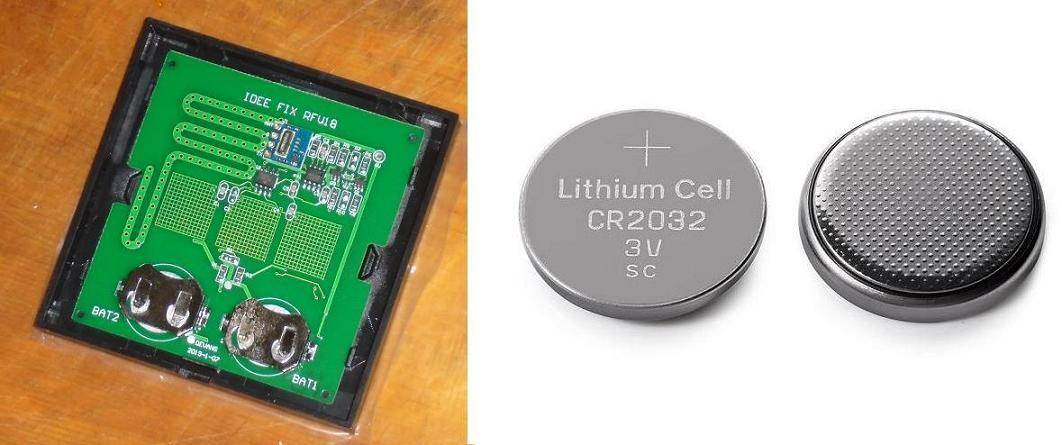 Для питания выключателя-передатчика используются две литиевые батарейки 3 В типа CR2032.