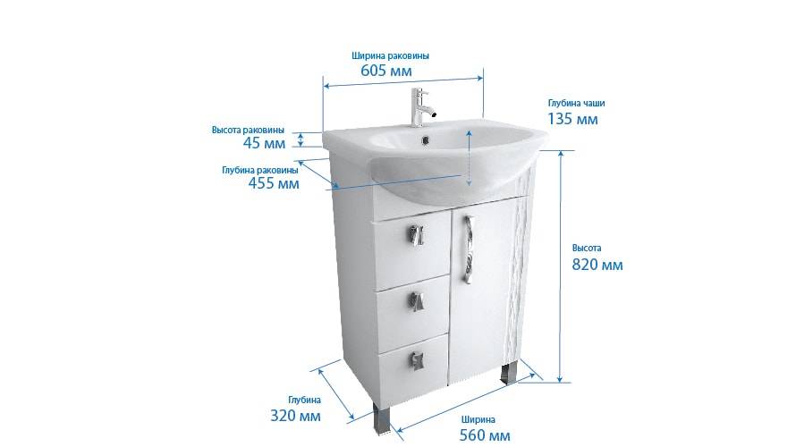 - Раковины стандартных размеров.