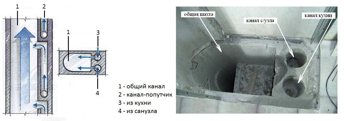 В этом случае вентиляционные шахты не соединяются между собой, улучшается тяга внутри трубы, а в дом не поступает загрязнённый воздух из соседских квартир. Другая разновидность такой схемы вентиляции в хрущёвке – из каждой квартиры отдельные каналы ведут к крыше, где соединяются в единую трубу, которая выводит воздушные массы на улицу.