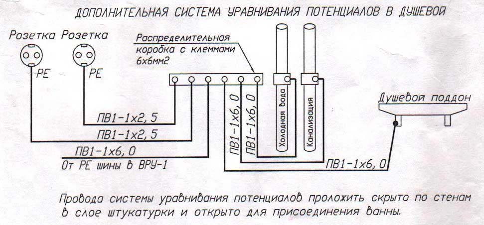 Схема заземления ванны.
