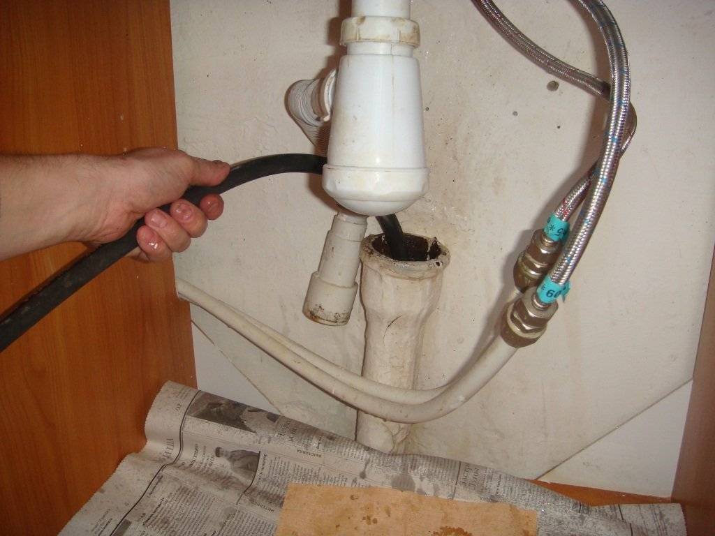 Если запах появился из-за засора труб или сифона, применяют подходящий способ прочистки. Существуют три основных метода.