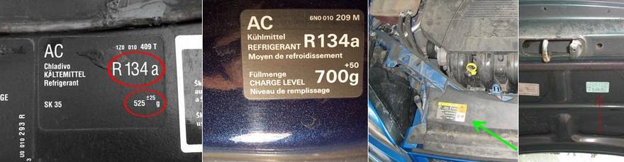 Чтобы автомобильную климатическую установку заправить самому, нужно выяснить количество и марку заливаемого фреона. Как правило, эти данные содержатся в инструкции эксплуатации машины плюс под капотом имеется шильдик либо наклейка. Указывается 2 характеристики – марка и вес хладагента в системе. Соответственно, нужно купить требуемое количество газа с учетом запаса 5–10%!на продувку и непредвиденные потери.