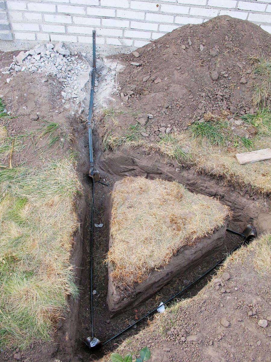 Также стоит дополнительно прокопать траншею такой же глубины для подвода полосы к зданию и выводу ее на фасад.
