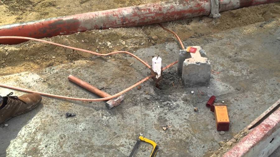 - Когда все вертикальные электроды забиты, срезают площадки или искореженные куски, зачищают металл, приваривают горизонтальный электрод — маталлосвязь. Шов должен быть непрерывный, хорошего качества.