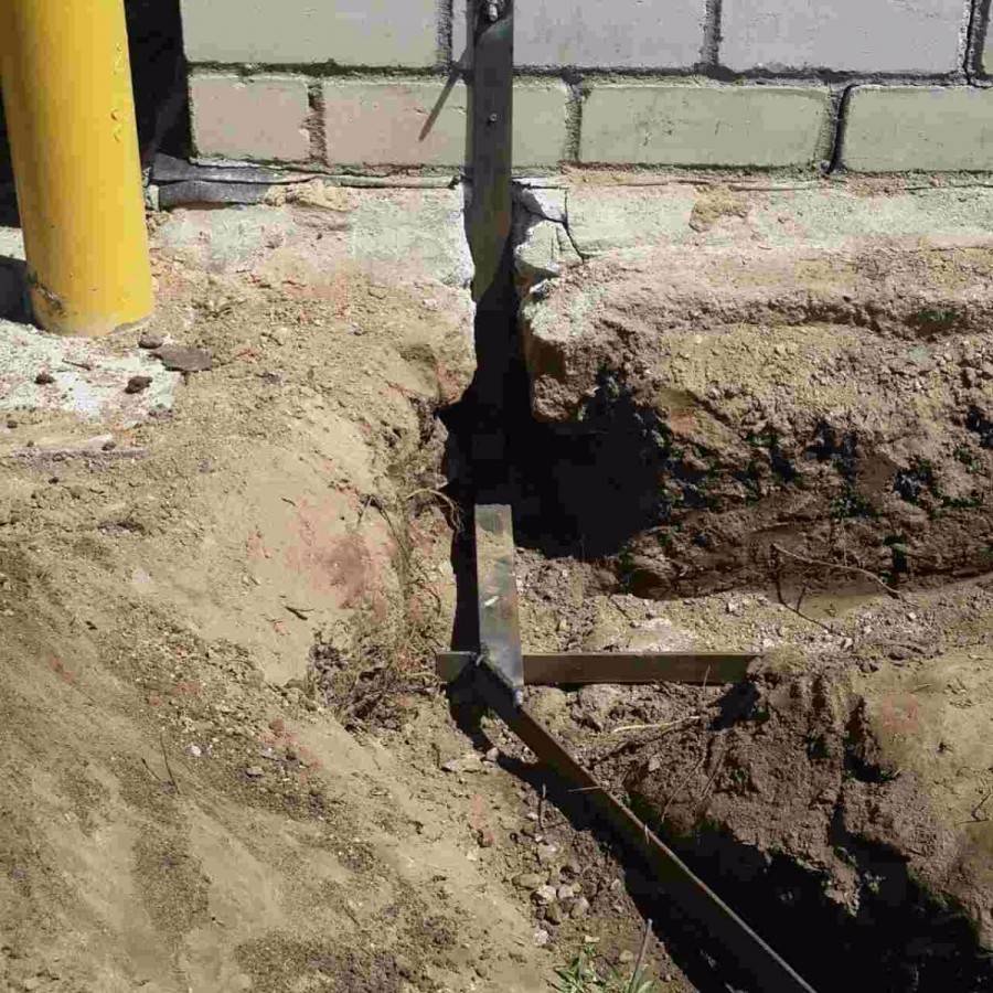 Траншея для шины заземления прокопана от контура до фундамента дома